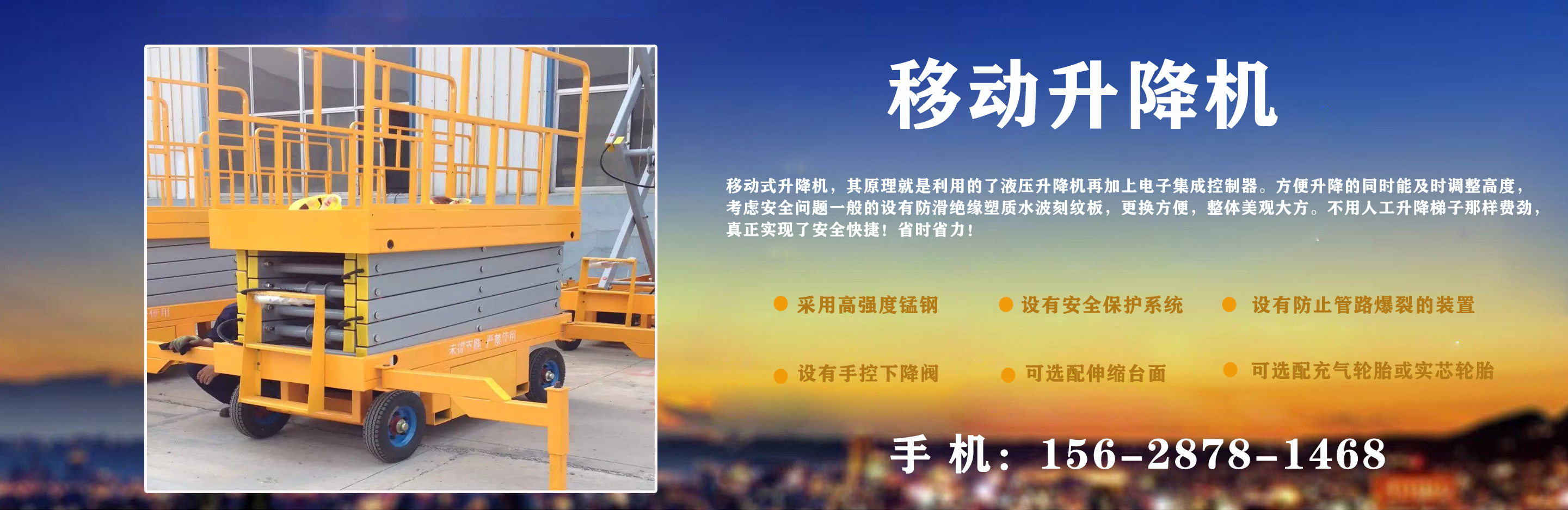濟南中升機械制造有限公司主營移動升降機,小型移動升降機,移動式升降機,移動剪叉升降機,移動剪叉式升降機等產(chǎn)品,信譽良好,歡迎前來咨詢訂購!  在銷售上,尊重每一個客戶,做到保質(zhì)、保量及時供貨;在售后服務上,以較短的時間,用較快的速度解決,終身追蹤服務。  公司始終以“品質(zhì)為本,服務至上”為公司宗旨。致力于提供高品質(zhì)的產(chǎn)品,完善的服務,快捷的供貨,無論您身處何方,都能感受到我們的優(yōu)良服務。客戶至上,誠信為本。  歡迎各界朋友來電,來函垂詢,選購!...